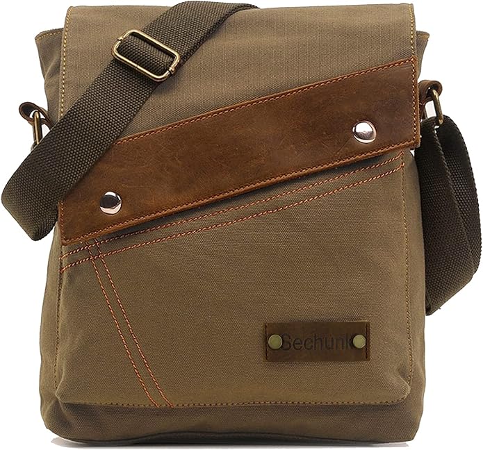 Sechunk’s small messenger bag combines vintage charm with practical design. Crafted from high-quality canvas and leather, it offers ample space and multiple pockets for all your essentials.